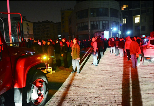 2016年1月17日凌晨,青島市嶗山區麥島家園小區9號樓內電表箱突然起火,濃煙產生后迅速蔓延到整棟樓。樓上上百戶居民寒風中緊急疏散下樓。現場幾位佩戴消防過濾式自救呼吸器的消防隊員正在救援。