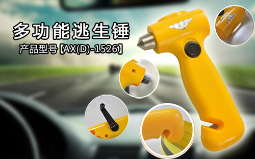 以前轎車玻璃升降都是手搖式的,所以很少車內會配有,通常只出現在客車上。然而,隨著電子升降替代機械升降以后,雨天涉水行車涉水熄火后車窗是打不開的,這點要吸取經驗教訓。隨車配備帶有割安全帶功能刀子的多功能逃生錘必不可少。