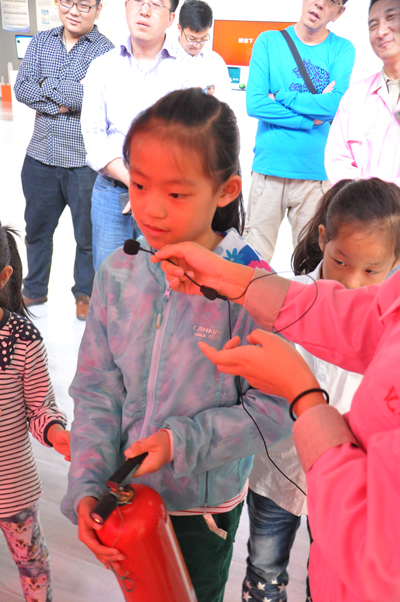 走進(jìn)培訓(xùn)中心,豐富的體驗(yàn)點(diǎn)讓學(xué)生們歡呼雀躍,3D技術(shù)短片《災(zāi)難警示錄》播放過(guò)程中,地震來(lái)臨,成群老鼠亂竄,觀看的孩子情不自禁抬起雙腳遠(yuǎn)離地面;消防標(biāo)志識(shí)別系統(tǒng)、火災(zāi)隱患識(shí)別查找系統(tǒng)等寓學(xué)于樂(lè)小游戲,孩子們?cè)诎职謰寢尩膸椭逻厡W(xué)邊玩,邊相互比賽,不亦樂(lè)乎;滅火器激發(fā)孩子動(dòng)手欲望,孩子們眼睛緊緊盯著滅火器,不等解說(shuō)員講解完就迫不及待的體驗(yàn);在高層樓宇緩降器體驗(yàn)區(qū),劉宸鑠在爸爸的鼓勵(lì)下體驗(yàn)高層緩降,成功著地后,劉宸鑠歡呼的拽著爸爸一起高層緩降,體驗(yàn)完高層緩降之后,劉宸鑠爸爸告訴講解員:“剛開(kāi)始心里有點(diǎn)擔(dān)心,現(xiàn)在孩子和我都體驗(yàn)完之后,感覺(jué)很安全,孩子不但學(xué)會(huì)了高層緩降,發(fā)生火災(zāi)時(shí)能保護(hù)自己,而且鍛煉了孩子的勇氣”;119火災(zāi)報(bào)警系統(tǒng)區(qū)域,張笑芊一秒鐘也等不及的想要體驗(yàn),索性和旁邊同學(xué)共用一個(gè)電話體驗(yàn),兩人異口同聲的回答,引來(lái)家長(zhǎng)陣陣笑聲。