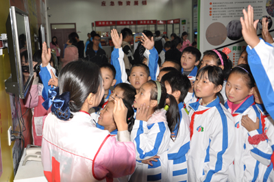 10月31日,洛陽路第一小學、青島理工大學80余名學生,在《中華人民共和國突發事件應對法》七周年來臨之際,走進海麗雅集團應急安全教育培訓中心學習災難應急自救逃生的知識和技能。