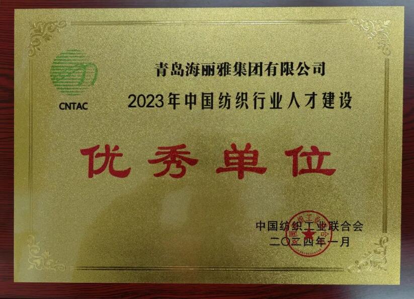 喜報|青島海麗雅集團榮獲“2023年中國紡織行業人才建設優秀單位”稱號