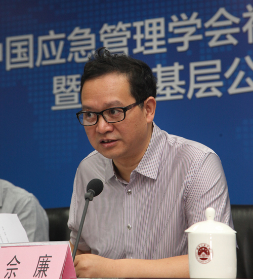 中國應急管理學會社區安全專業委員會秘書長余樹華發表講話。