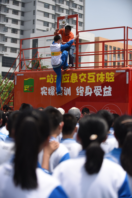 企業把載有安全體驗設備的大篷車開到市郊學校,為學生進行應急知識培訓提供方便,推進培訓活動的多樣化、廣覆蓋。