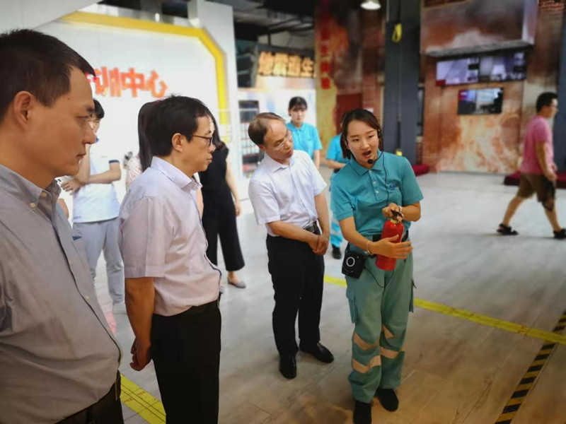 汪明副主任一行實地考察了“火災高層緩降逃生”,“3-6級地震”,“家庭安全隱患排查區(qū)”,“災難街”,“119模擬報警設備”等特色應急體驗項目,切身體驗了火災