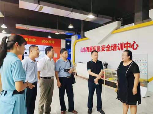 8月26號,濟南市應急局黨組成員、副局長劉慕平、濟南市應急局政策法規處負責人夏信強、青島市應急局領導一行蒞臨海麗雅集團參觀考察,青島海麗應急安全培訓中心總經理鄭文嬌全程陪同參觀產品展廳和應急安全體驗培訓中心。