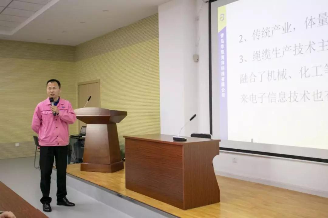 會議首先由集團輪值總經理黃濤為大家作了《特種繩纜技術現狀及其在航天領域應用》培訓,黃總向大家介紹了公司科技領先的繩纜產品及公司產品在航天領域應用上的頂尖技術優勢,大大激發了研發、生產、銷售人員的斗志,全體員工的自豪感油然而生。
