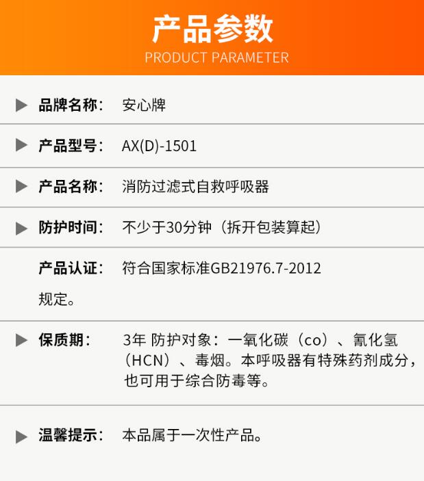 一、防火時間≥40分鐘,防毒、防火、防熱輻射、防煙多種保護,密封性好,適用于成年人各種面型。