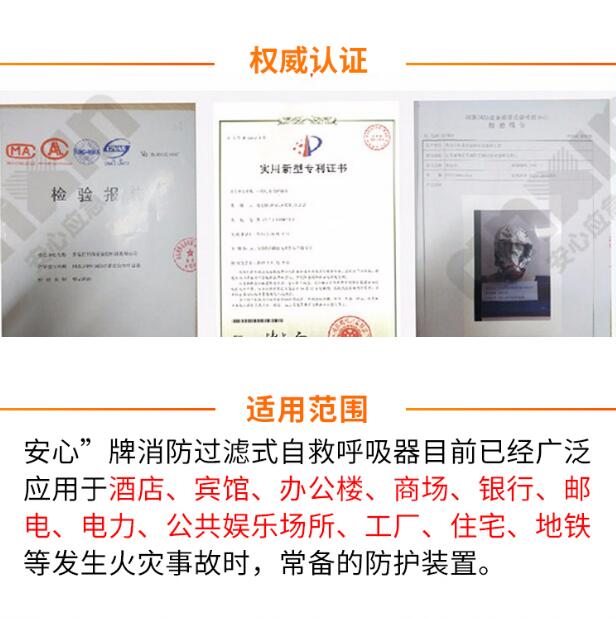 防火呼吸面罩是賓館、辦公樓、商場、銀行、郵電、電力、醫院、地鐵、輪船、車站、碼頭、公共娛樂場所和住宅等預防火災事故時,重要的個人防護呼吸保護設備。
