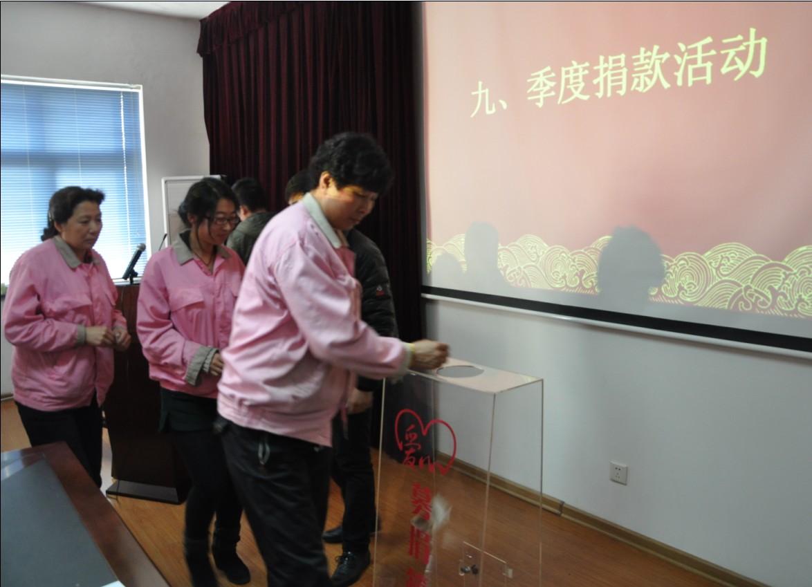 會中,全體培訓人員通過朗誦《海麗公司八榮八恥》、合唱《海麗之歌》、觀看公司宣傳片,以及愛心基金會季度捐款活動,受到了海麗濃厚文化的潛移默化影響,更增加了對企業的熱愛之情。