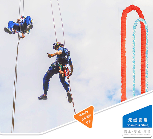 無縫管狀扁帶通過不同顏色區分產品長度,無縫連接技術優化產品外觀及性能,消除強力損耗點,提高強力及穩定性能,為使用者安全提供更好的保護作用,性能指標符合EN566、EN354及EN795 typeB裝置掛點標準。