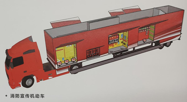 車內(nèi)設(shè)備部分包含家庭常見火災(zāi)注意事項(xiàng)及消防模擬體驗(yàn)系統(tǒng)、消防模擬逃生通道、消防產(chǎn)品二維碼掃描系統(tǒng)、消防知識LED顯示屏、應(yīng)急自救產(chǎn)品點(diǎn)播演示系統(tǒng)、流動高音宣傳系統(tǒng)、滅火毯體驗(yàn)系統(tǒng)、生活消防常識展板、消防設(shè)備展示窗等內(nèi)容。大量運(yùn)用了電腦控制技術(shù),集宣傳、娛樂、體驗(yàn)為一體。